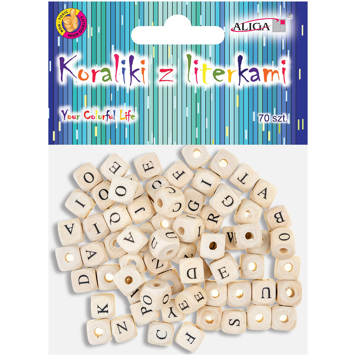Drewniane koraliki z literkami 10x10x10 mm - 70 szt