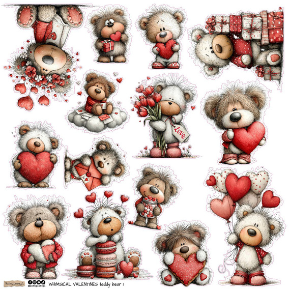 Naklejki papierowe - ScrapLove - Whimsical Valentines Teddy Bear 1