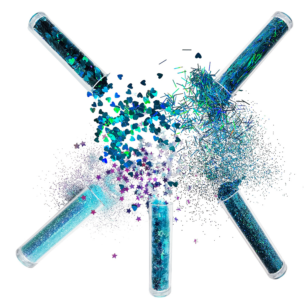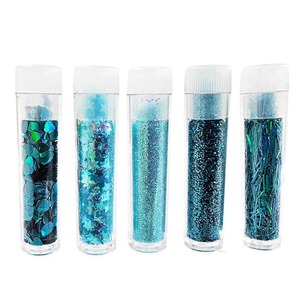 Zestaw brokatów i ozdób gwiazdki serduszka - aqua