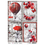 Papier ryżowy do decoupage A4 - Ciao Bella - Paris Je T'aime Cards balon wieża Eiffla zakochani