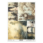 Papier ryżowy do decoupage A4 - Alicja, klucz, klatka, trucizna, napisy, książki - R2658 - Itd Collection