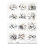 Papier ryżowy do decoupage A3 - zimowe ptaki, rudzik, sikorka, wróbel - R1330L - Itd Collection