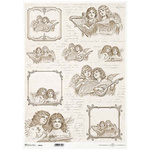 Papier ryżowy do decoupage A3 ITD-935L vintage anioły, ozdobne ramki, nuty
